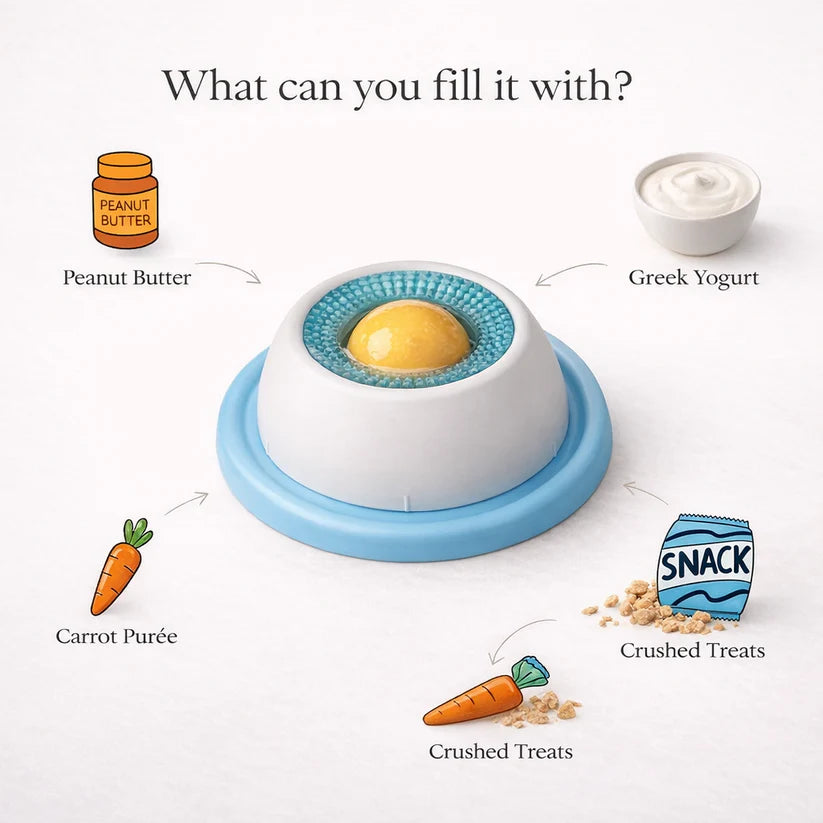 From creamy peanut butter to cooling yogurt or their favorite snacks — this bowl turns every treat into a calming, rewarding experience. Just fill, place, and let them enjoy at their own pace.